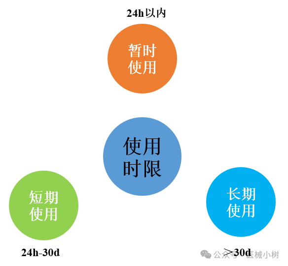暂时使用:医疗器械预期的连续使用时间在24小时以内;常见的有注射器、医用胶带等。